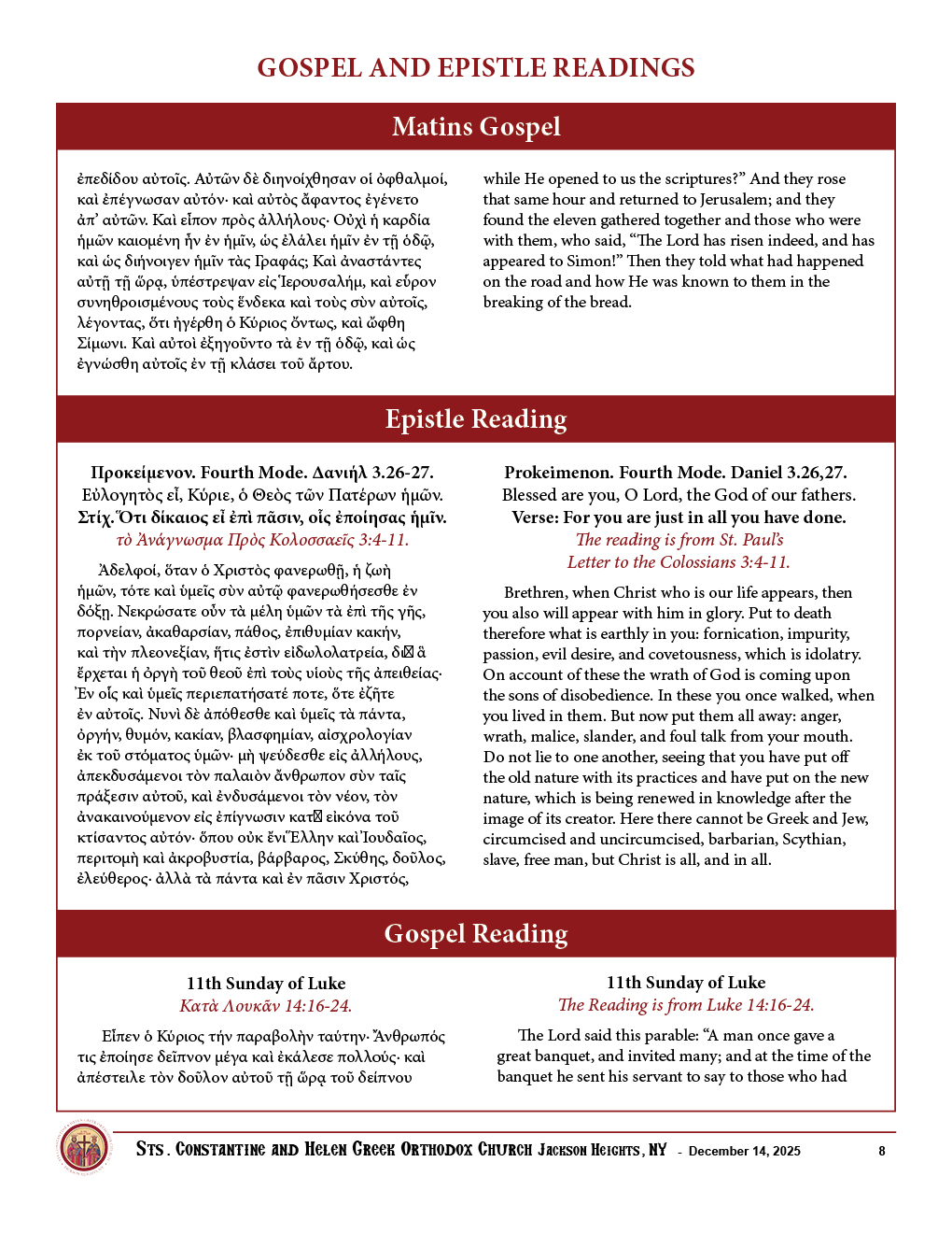 Sunday, December 14th