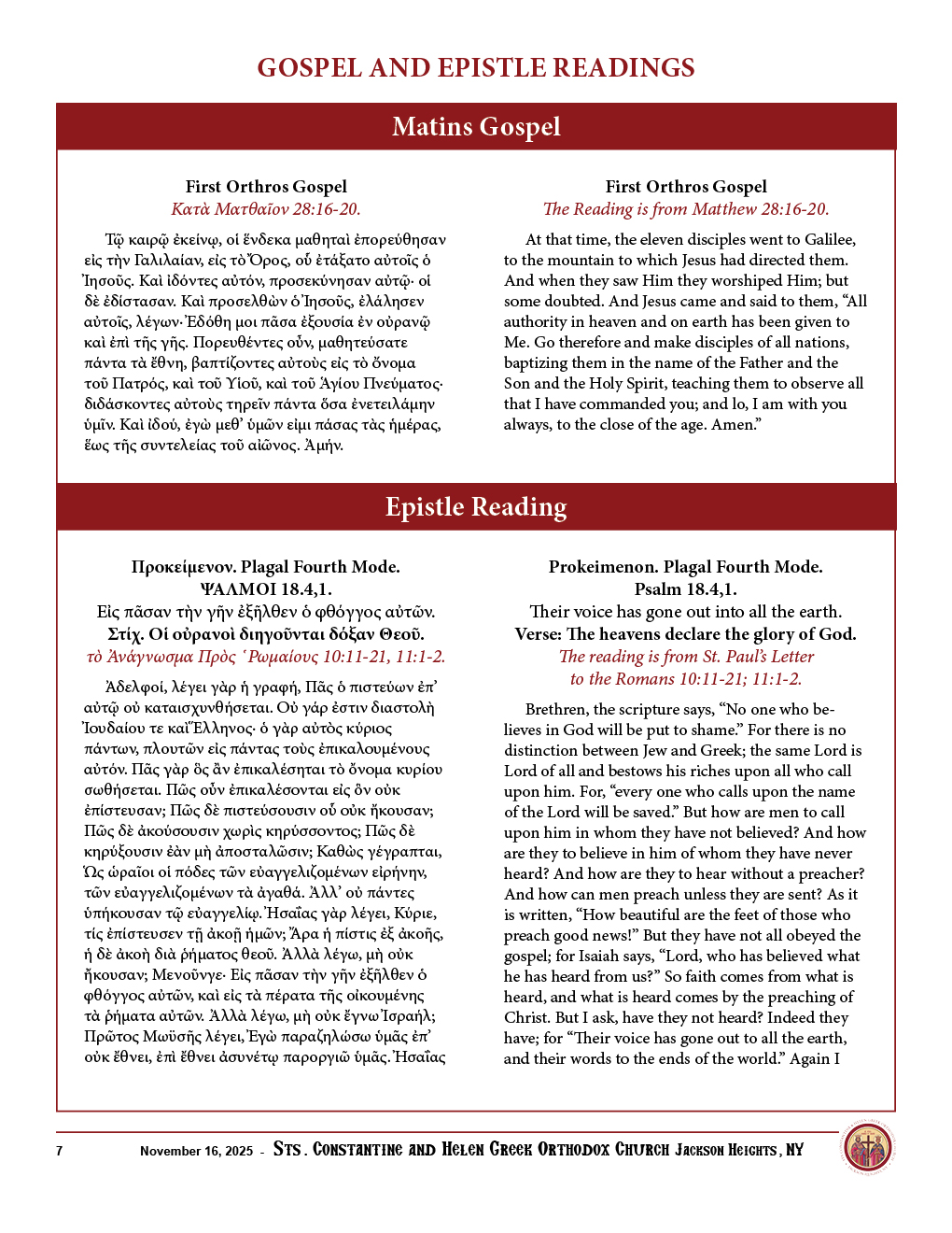 Sunday, November 16th