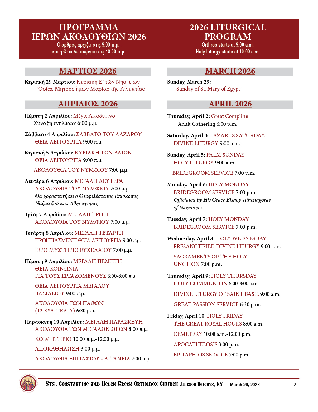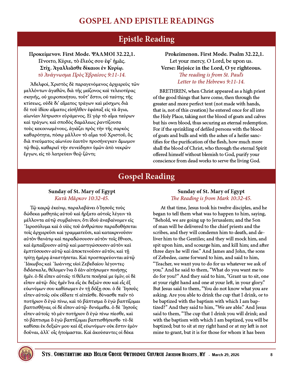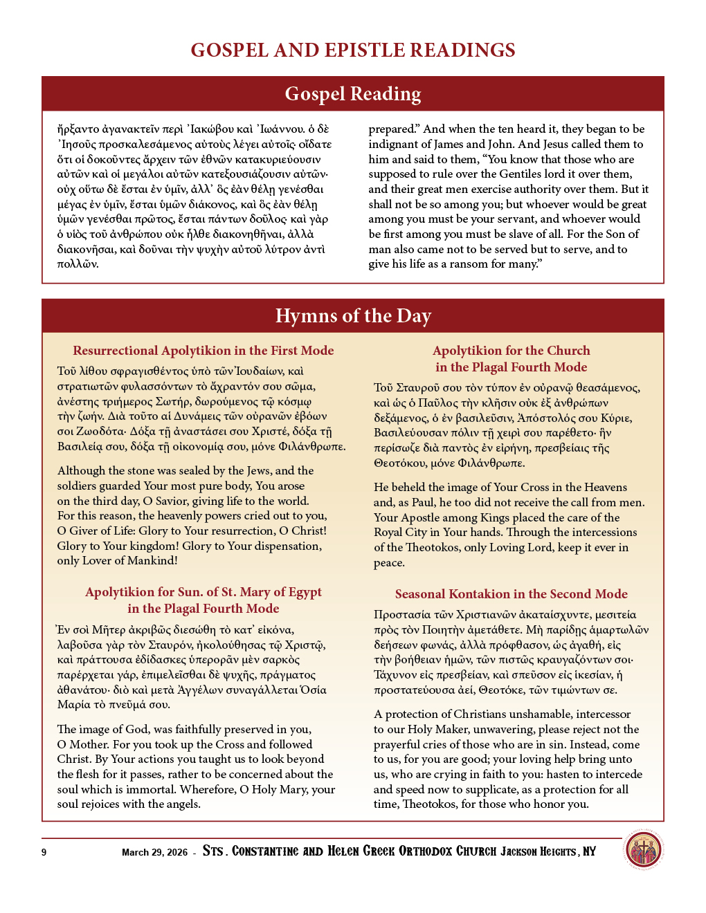Sunday, March 29th